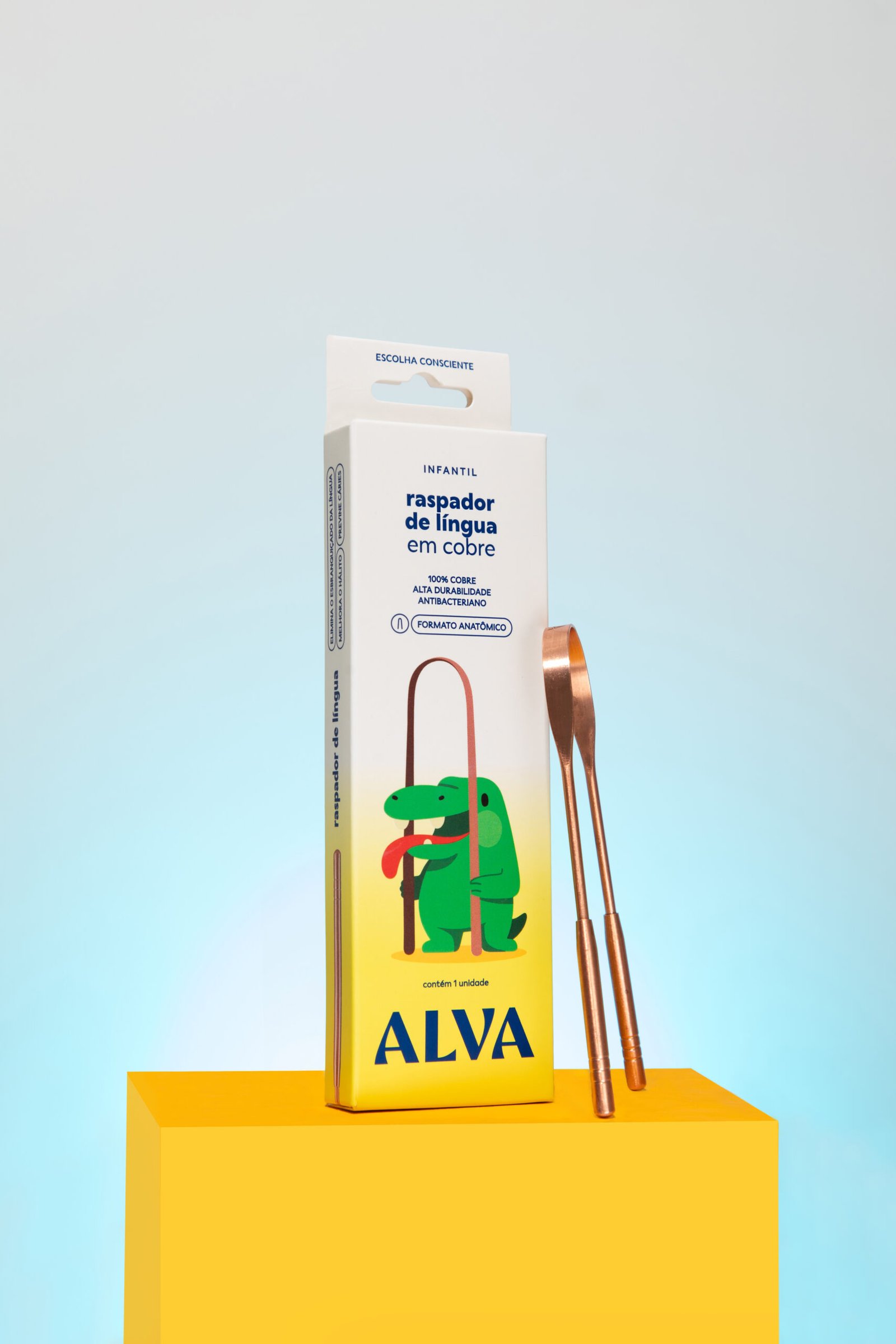 O Raspador de Língua de Cobre Infantil foi projetado para auxiliar na higiene bucal das crianças, seu formato anatômico permite a higienização sem machucar, removendo a saburra lingual, e proporcionando uma limpeza mais adequada, hálito fresco e prevenindo cáries.